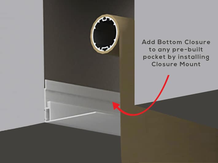 Requiring no tools to install, Bottom Closure simply hooks on to the bottom of the Shade Pocket or Bottom Closure and can be added at any time after the shade has been installed.