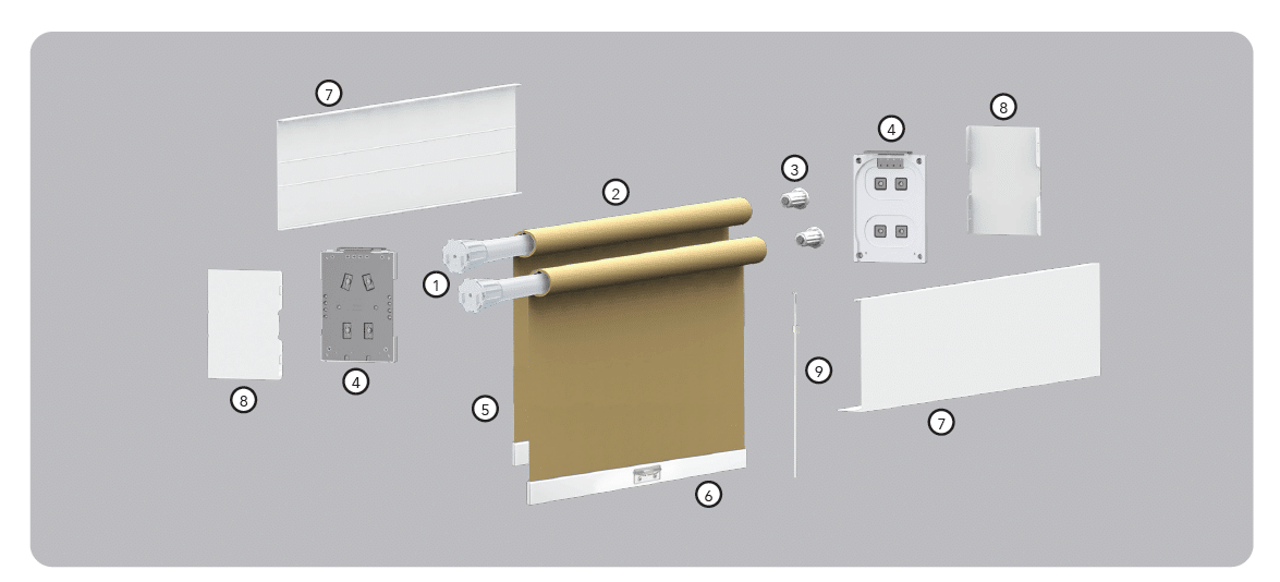 • Dual shades can be installed in two ways: staggered on a dual bracket; or tandem, hung one in front of the other using individual brackets.