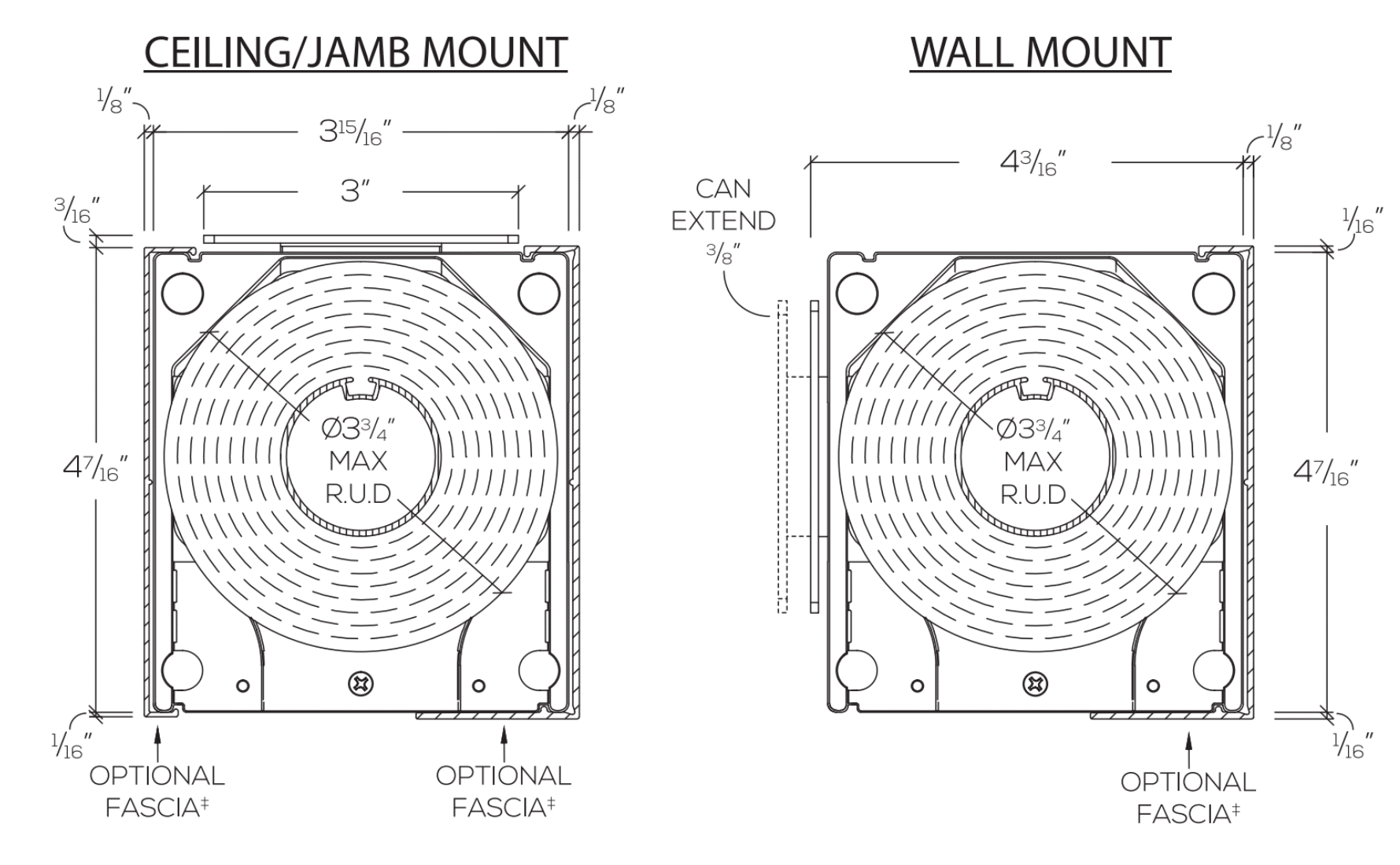 • Featuring our proprietary, all-in-one SoloMount® Brackets: Ceiling, Wall or Jamb mount capable allowing easy, on-the-fly adjustments. Mounting flange is extendable for Wall Mount applications.