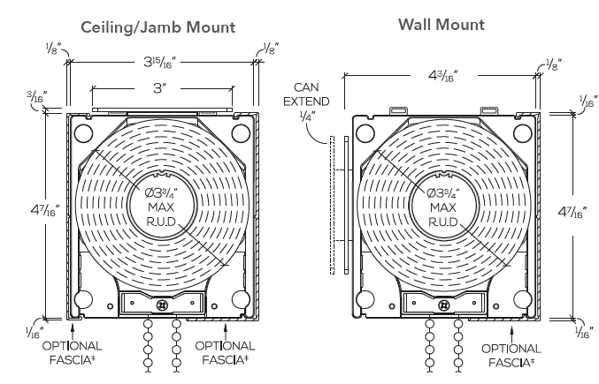 • Featuring our proprietary, all-in-one SoloMount® Brackets: Ceiling, Wall or Jamb mount capable allowing easy, on-the-fly adjustments. Mounting flange is extendable for Wall Mount applications.