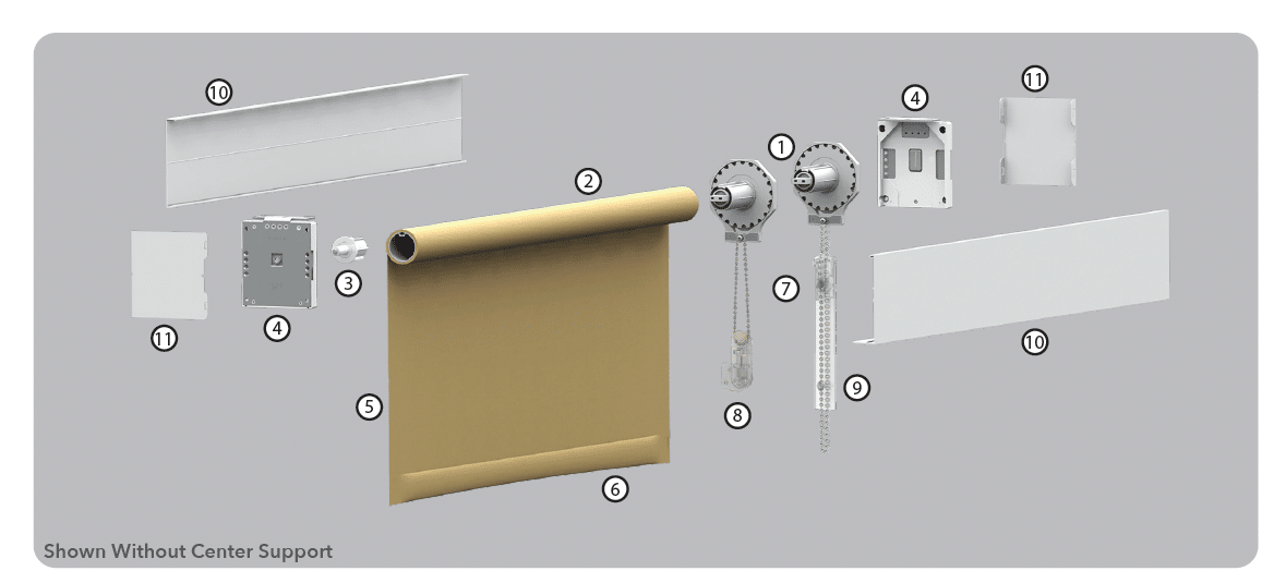 • Metal to metal contact points on both the Drive and Idle sides of the shade ensure a sturdy and reliable connection to the brackets.