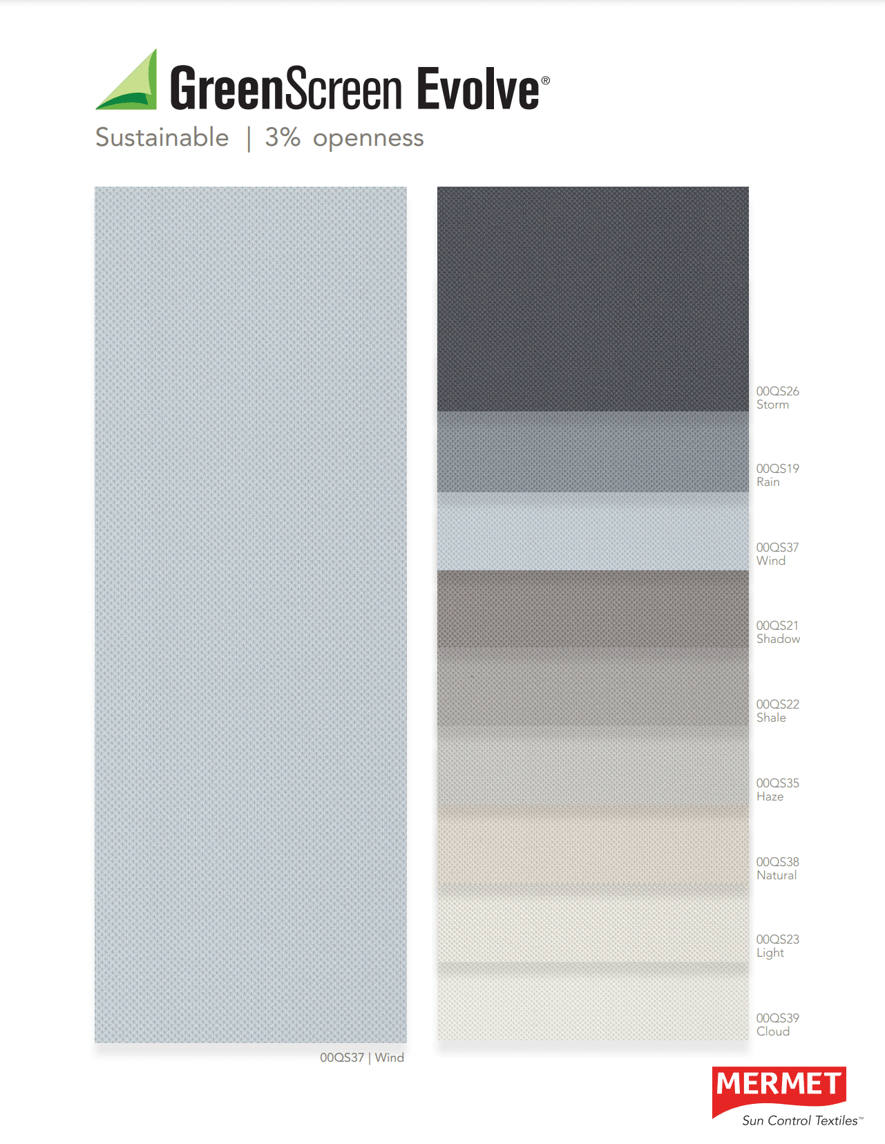 A zero waste, translucent polyester fabric that contains 78% recycled content made from 100% post-industrial and consumer plastic waste, 100% recyclable. This is a sample card that showcases a comprehensive palette, featuring all available colors for this product.