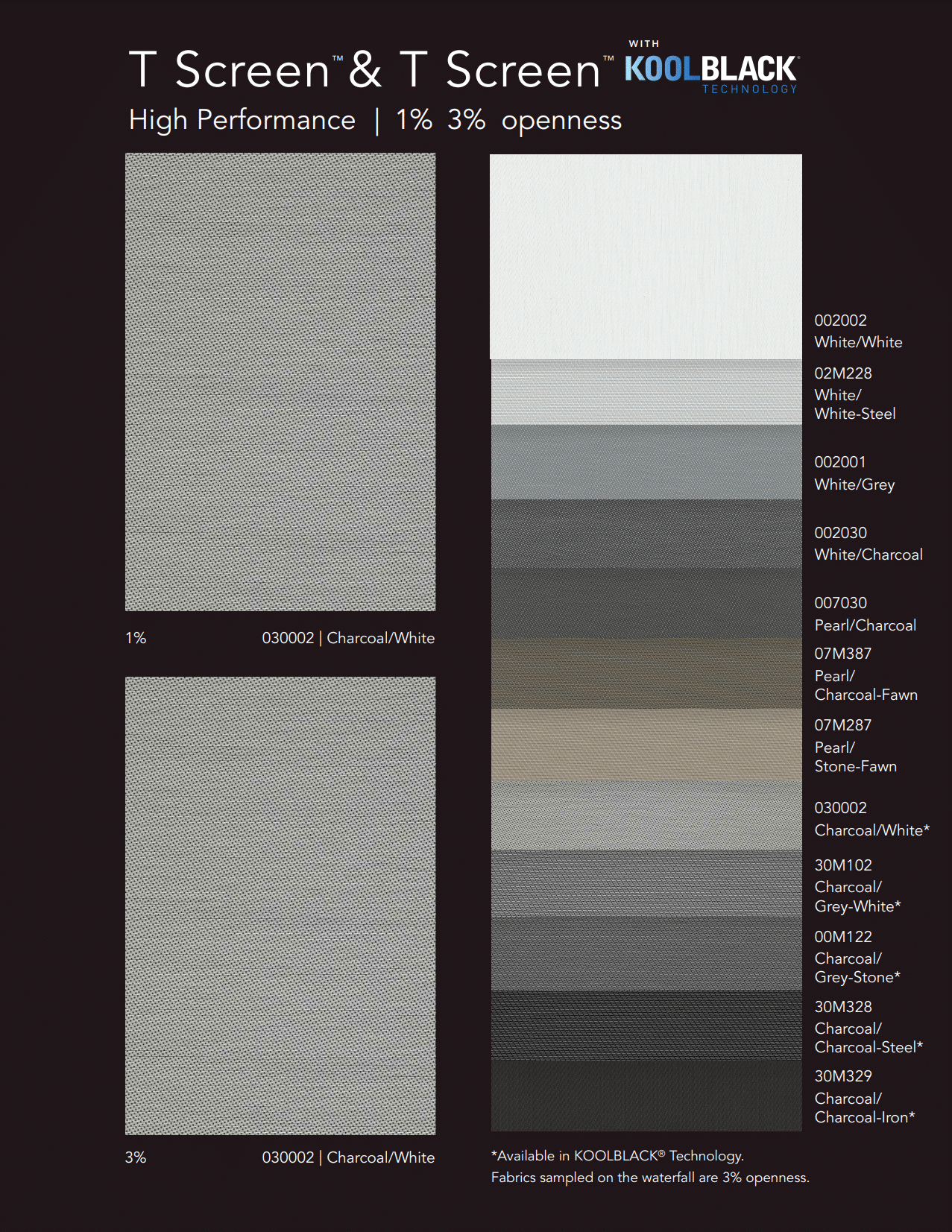 An elegant and distinctive dual-sided, vinyl coated fiberglass fabric that has an assortment of room side and street side colors. This fabric is a reversible, satin weave pattern, allowing the end user versatility of design. This is a sample card that showcases a comprehensive palette, featuring all available colors for this product.