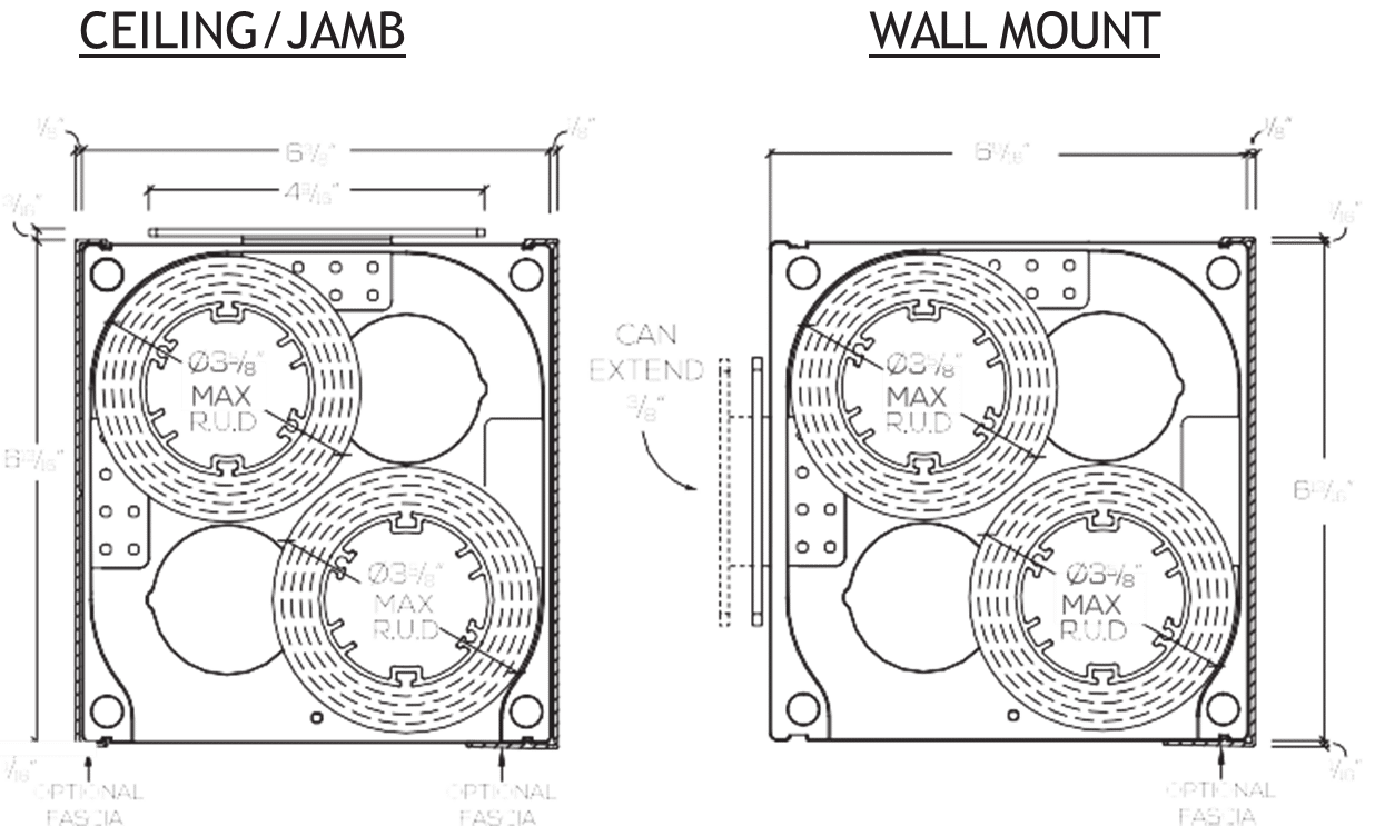 • Featuring our proprietary, all-in-one SoloMount® Brackets: Ceiling, Wall or Jamb mount capable allowing easy, on-the-fly adjustments. Mounting flange is extendable for Wall Mount applications.