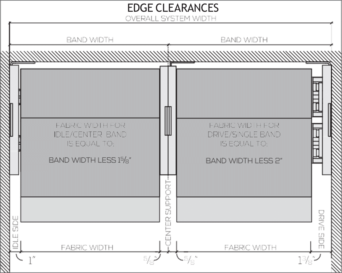 Optional: CENTER SUPPORT (INCLUDES CENTER SUPPORT BRACKET, TANGS, AND FORKS) Coupled option available up to 6 bands. Can be Ceiling or Wall Mounted. Drive Right or Drive Left.