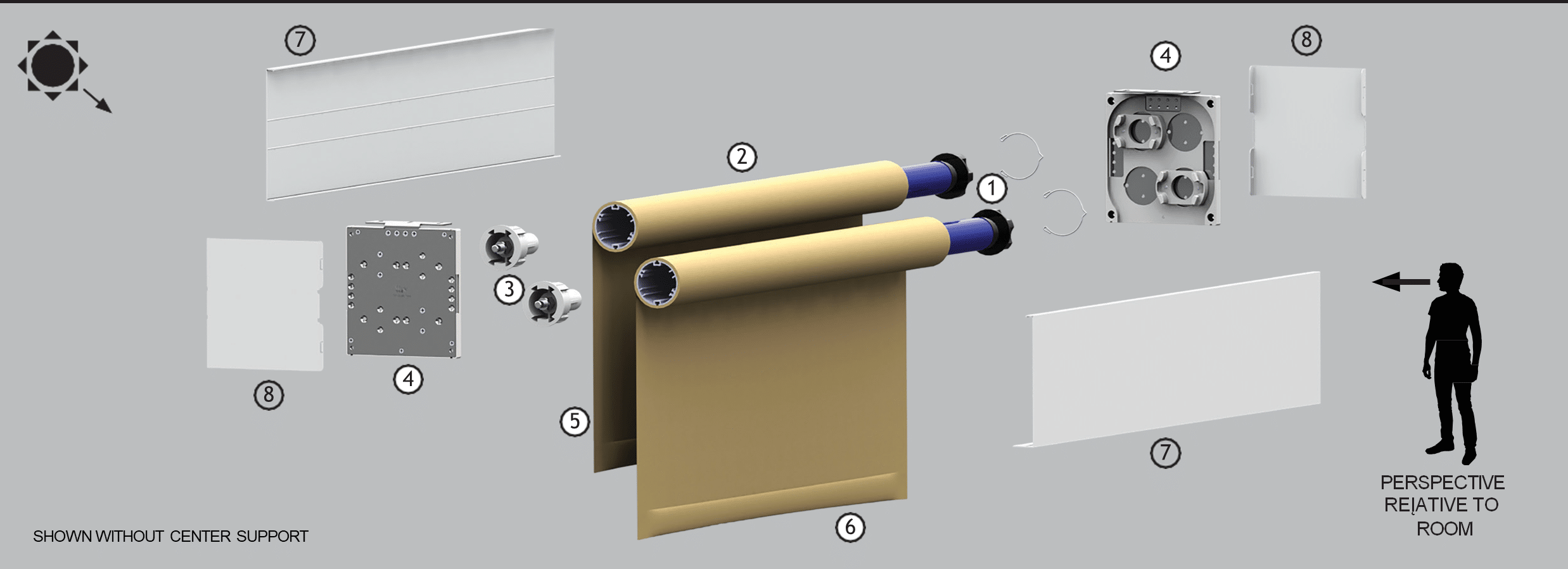 • Dual shades can be installed in two ways: staggered on a dual bracket; or tandem, hung one in front of the other using individual brackets.