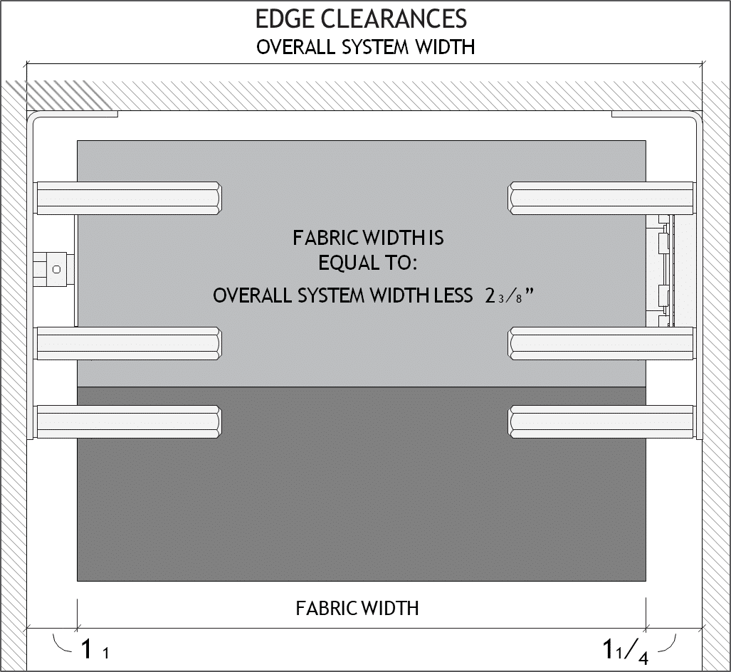 System Capabilities are for guideline purposes only based on WT 243 fabric and do not guarantee that a shade with any fabric can be made to these dimensions. Width and length may vary depending on selected shade fabric. Visit inpro-shades.com or contact Customer Service to verify system capabilities based on project specific selections.