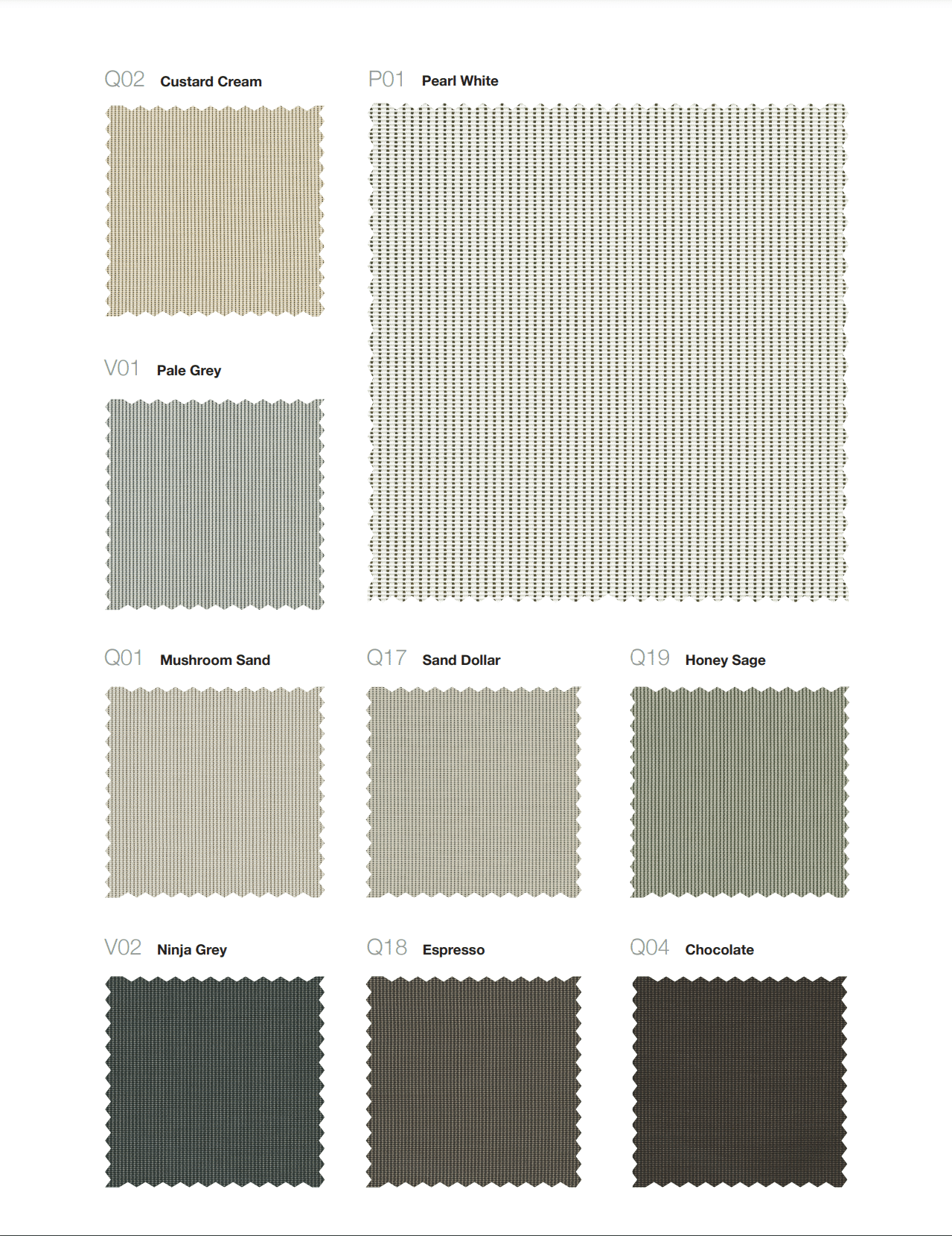 SheerWeave 3000 provides 14% openness to let in natural light and give you excellent outward visibility. Use SheerWeave 3000 for all applications. This is a sample card that showcases a comprehensive palette, featuring all available colors for this product.