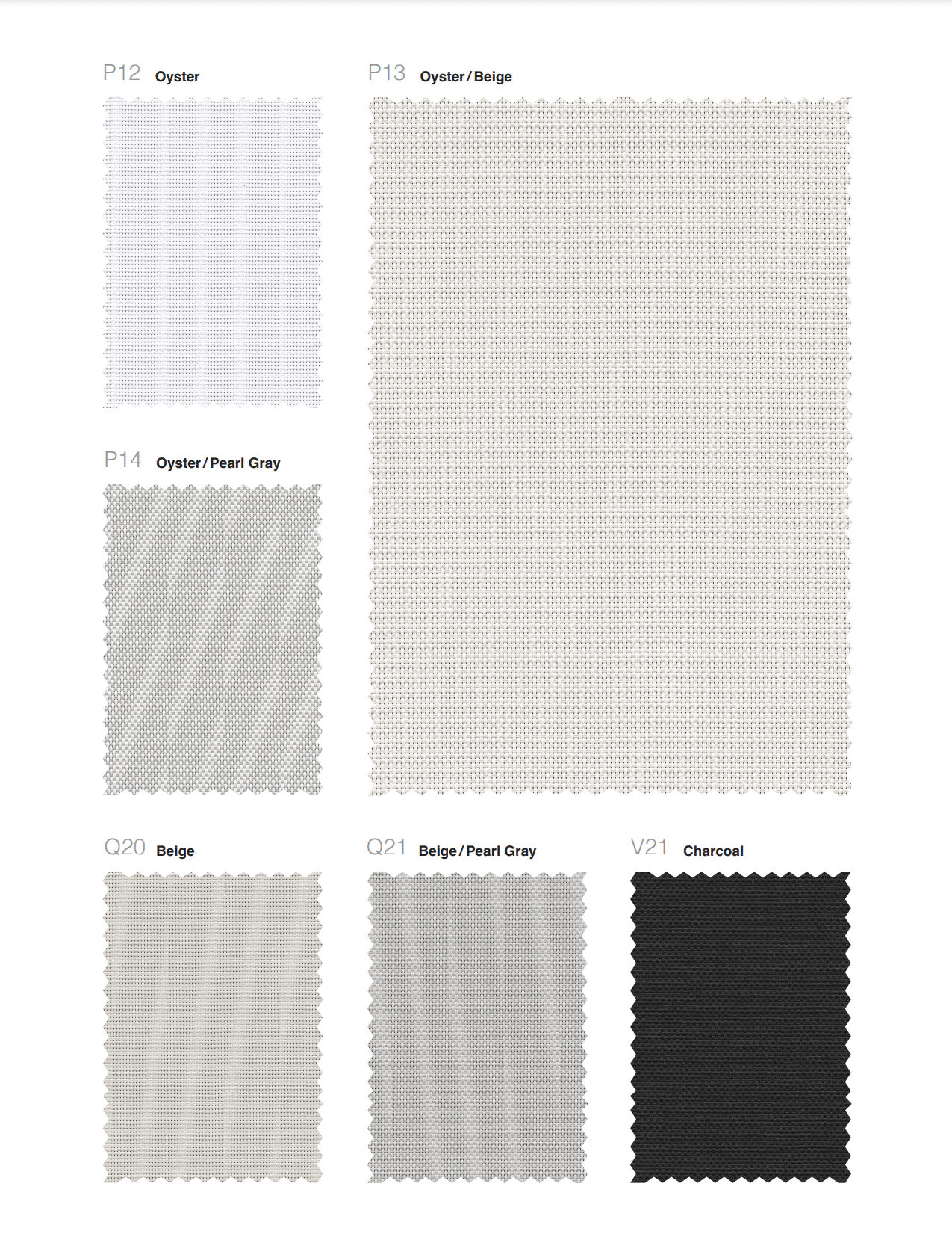 Offering total light blockage, SheerWeave 7100 is the only blackout fabric that’s infused with Microban and is designed to coordinate easily with SheerWeave Styles 2360, 2390, 2410 and 2500. This is a sample card that showcases a comprehensive palette, featuring all available colors for this product.