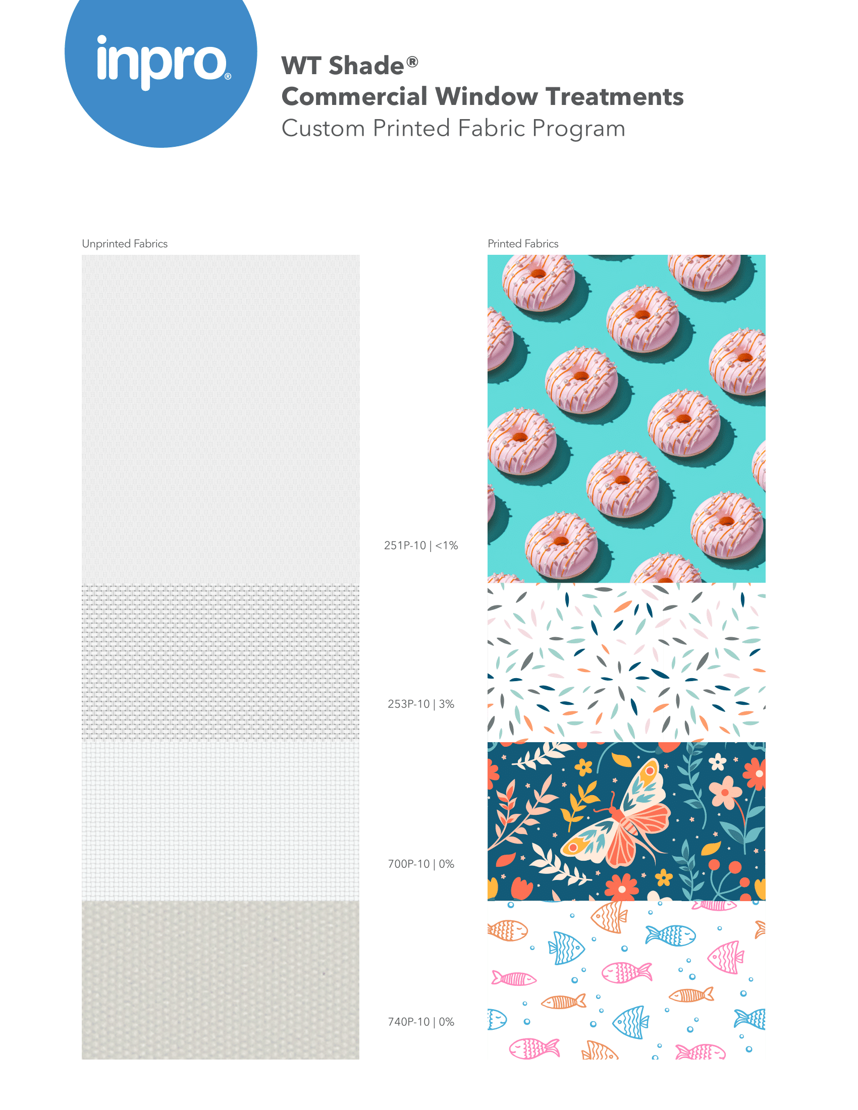 Custom print or photography can be applied to any of the available base fabrics for any shading project, big or small. There is no minimum quantity or size for any printed shade order allowing you to customize any shade, on any job! This is a sample card that showcases a comprehensive palette, featuring all available colors and openness for this product.