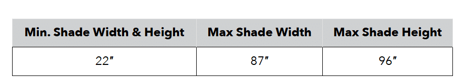 System Capabilities are for guideline purposes only based on WT 243 fabric and do not guarantee that a shade with any fabric can be made to these dimensions. Width and length may vary depending on selected shade fabric. Visit inpro-shades.com or contact Customer Service to verify system capabilities based on project specific selections.