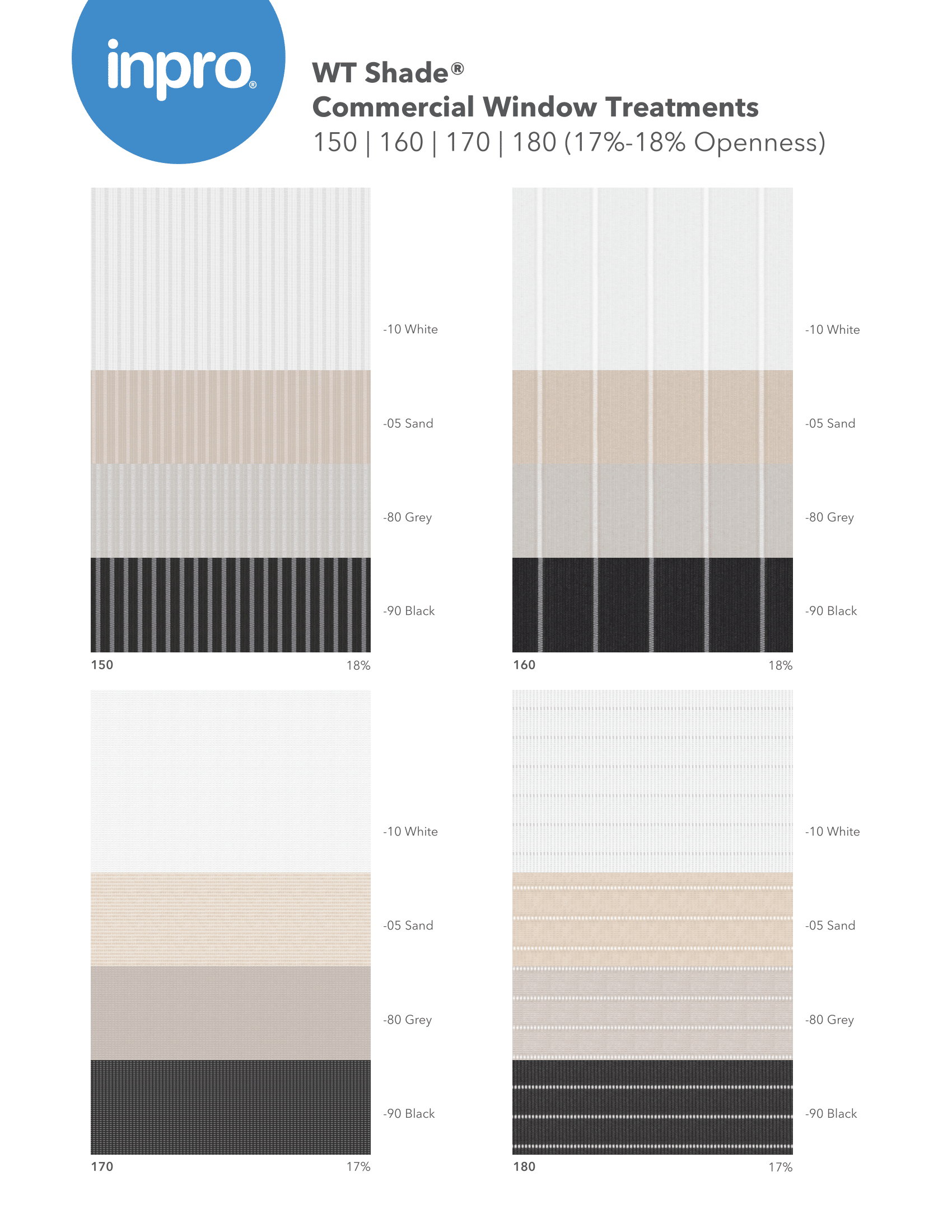 Our expansive WT Decorative Sheers collection features an array of designer fabrics that have been specially chosen for their soft textures and understated patterns. Add a soft, luxurious feel to any room environment. This is a sample card that showcases a comprehensive palette, featuring all available colors and openness for this product.