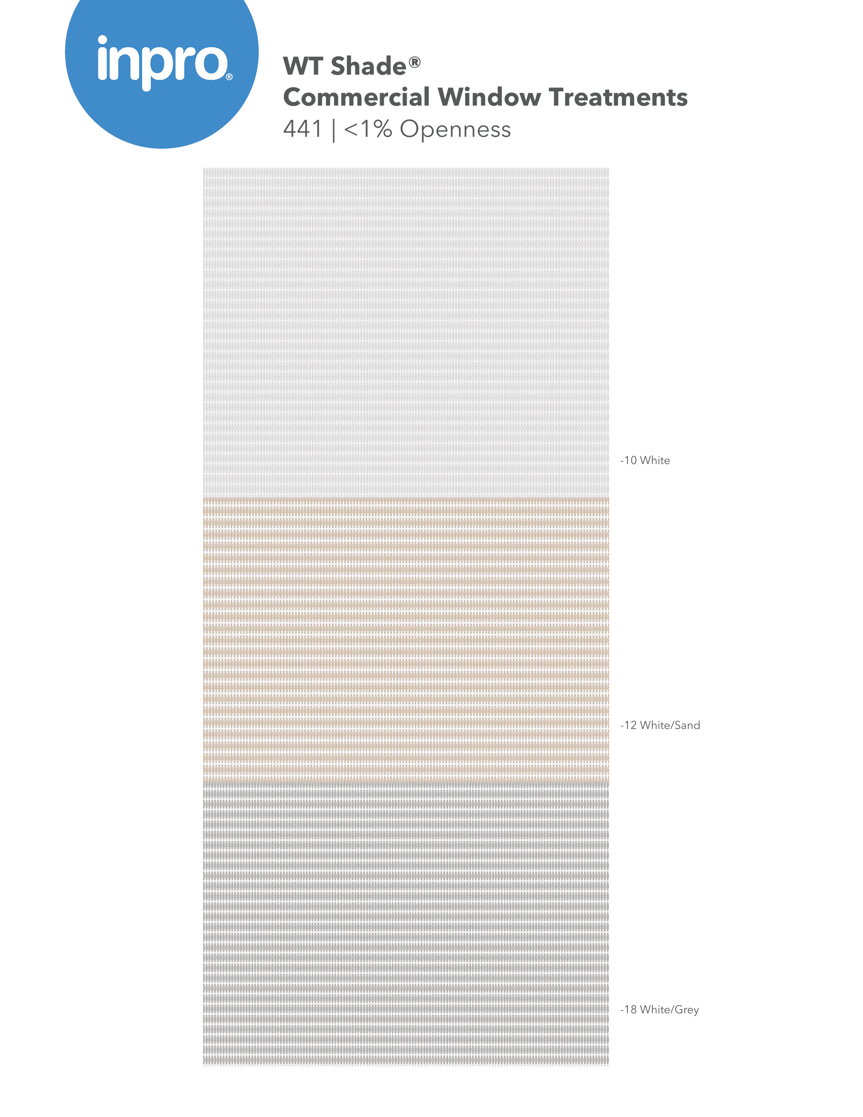When sun exposure is high, protecting your space with WT 441 is a must. This tight weave fabric provides optimal sun protection with an astounding 99% UV blockage. Combined with it’s distinguished horizontal stripe, this high performance fabric is the ideal complement to any interior space. This is a sample card that showcases a comprehensive palette, featuring all available colors and openness for this product.
